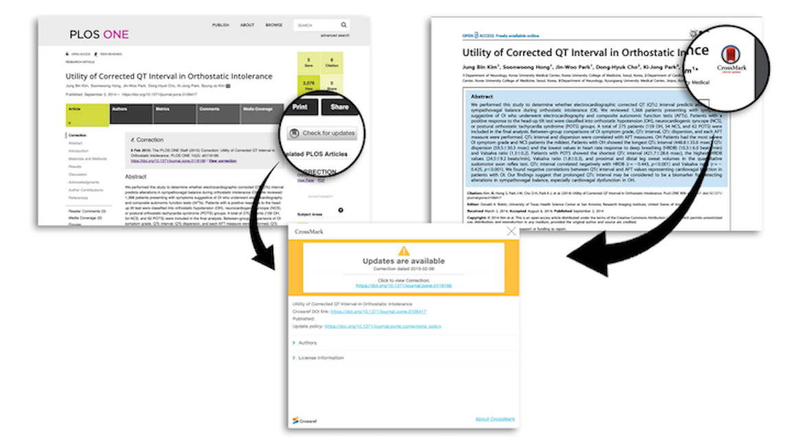 Research doesn’t stand still; even after publication, articles can be updated with supplementary data or corrections. When research outputs are is changed in this way the publisher should report and link it, so that those accessing and citing the content know if it’s been updated, corrected or even retracted. This also emphasizes the member’s commitment to the ongoing stewardship of research outputs.